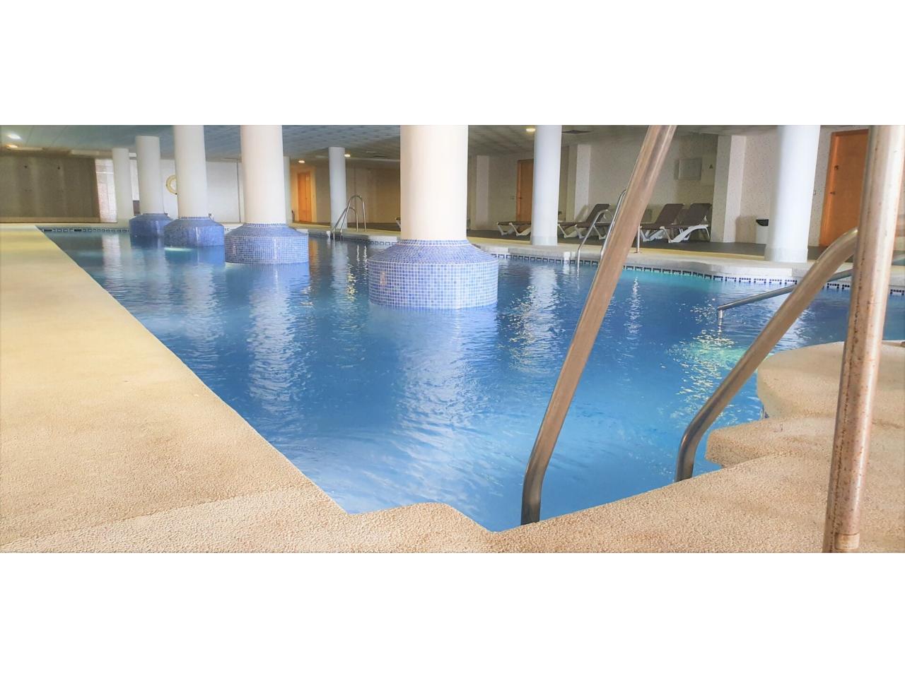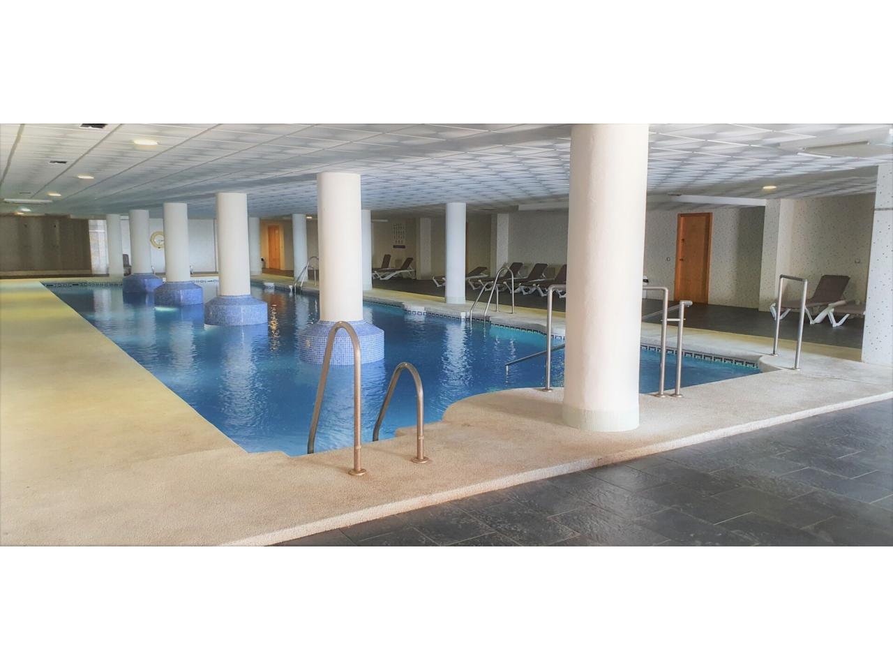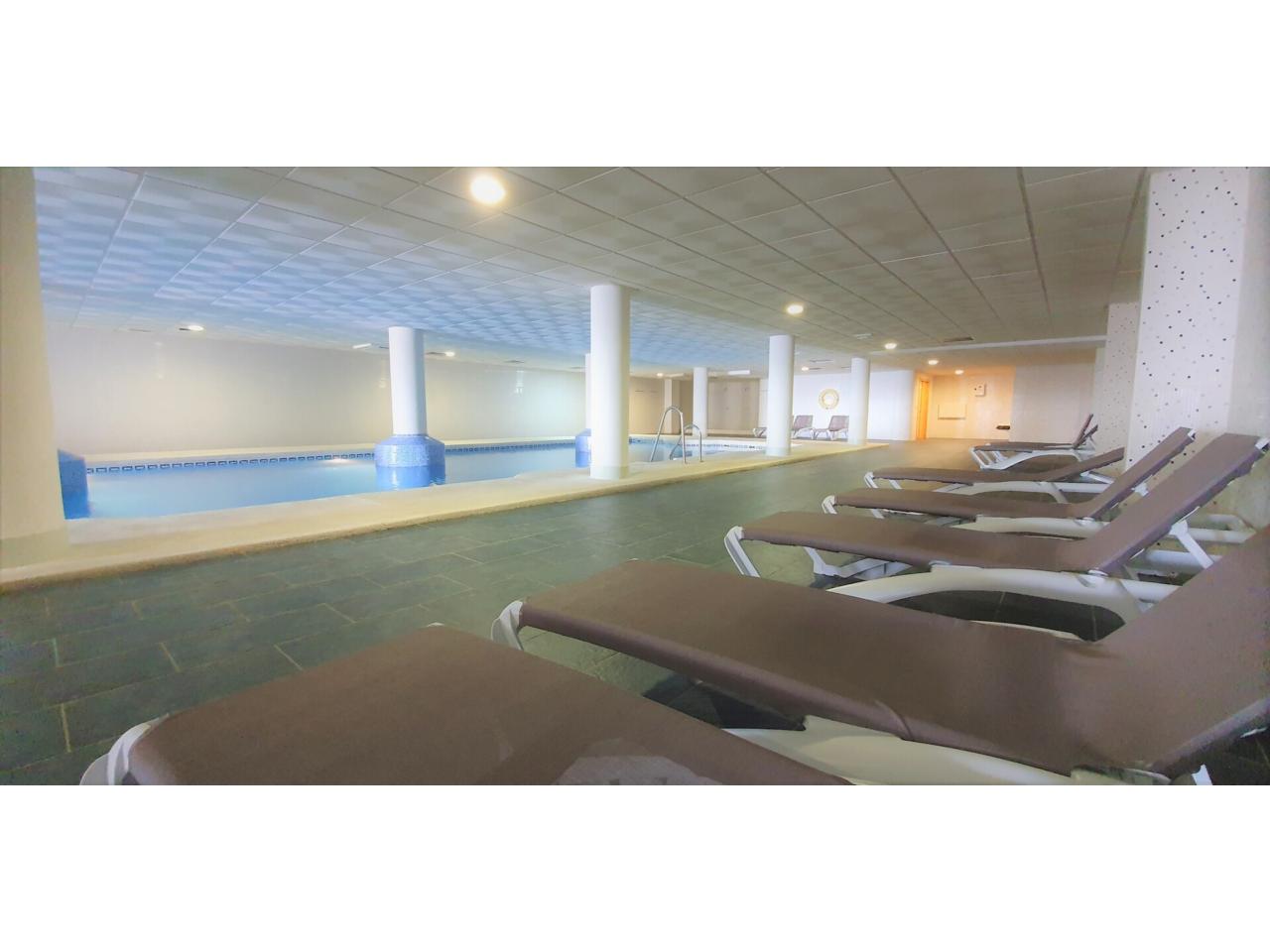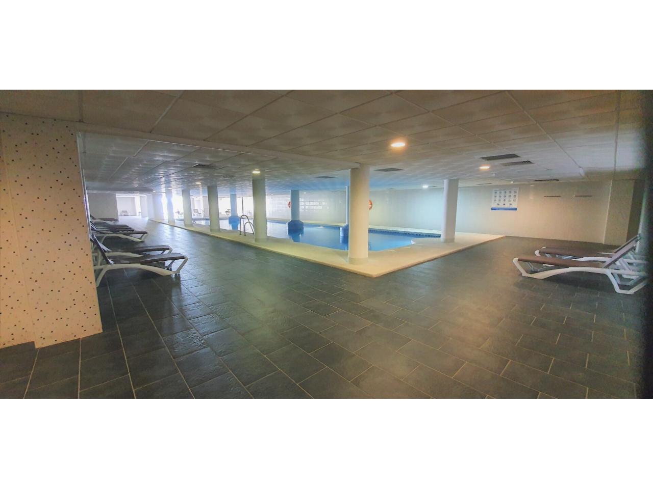 Se presenta un acogedor piso que destaca por su diseño minimalista y estilo moderno, con los servicios incluidos en zonas comunes como piscinas exterior y climatizada, gimnasio, comedor y salas de juego. La vivienda cuenta con una habitación doble, un baño completo y un gran salón con cocina integrada, que tiene acceso a una maravillosa terraza con buenas vistas. La plaza de garaje está incluida en el precio.