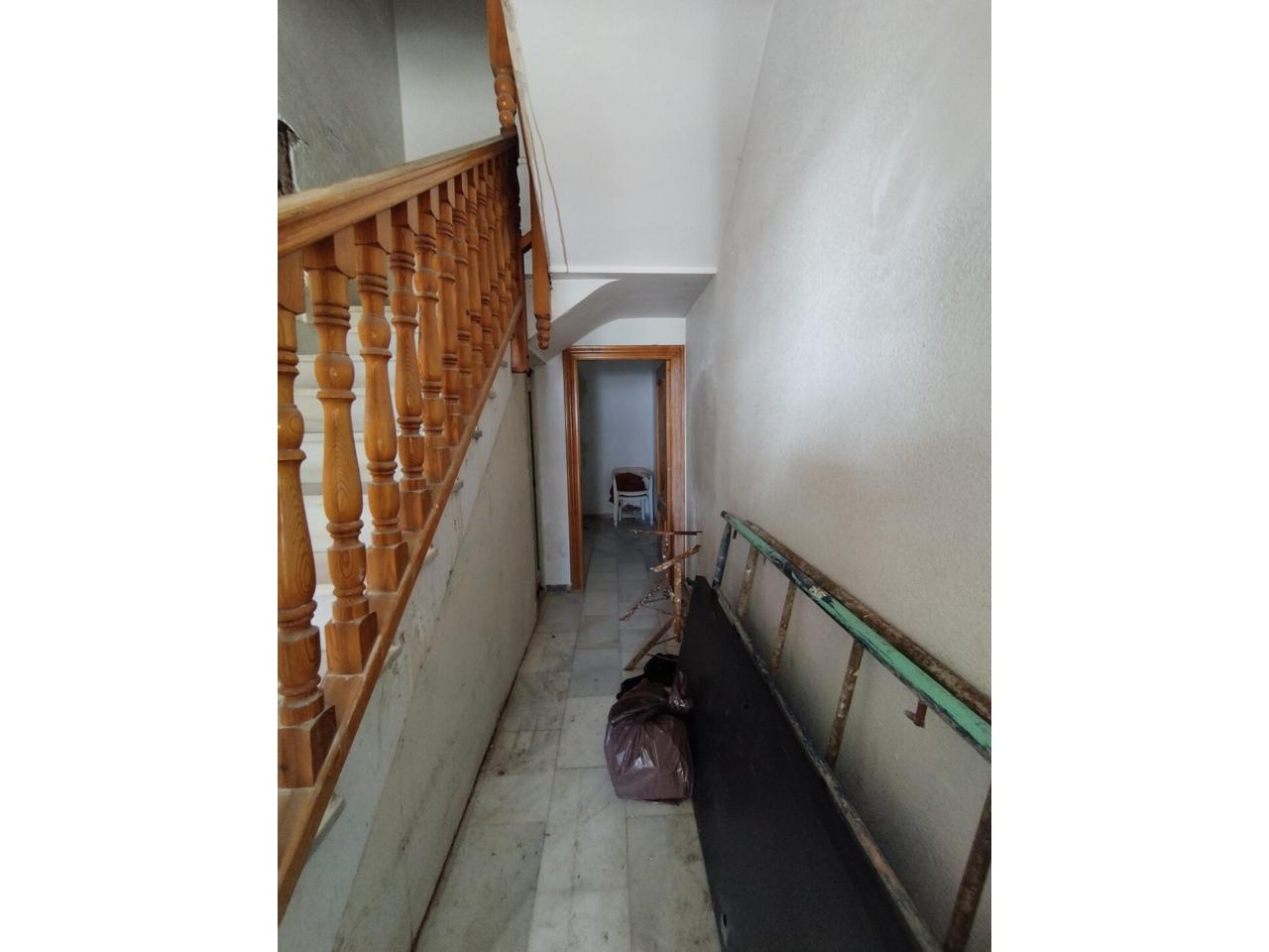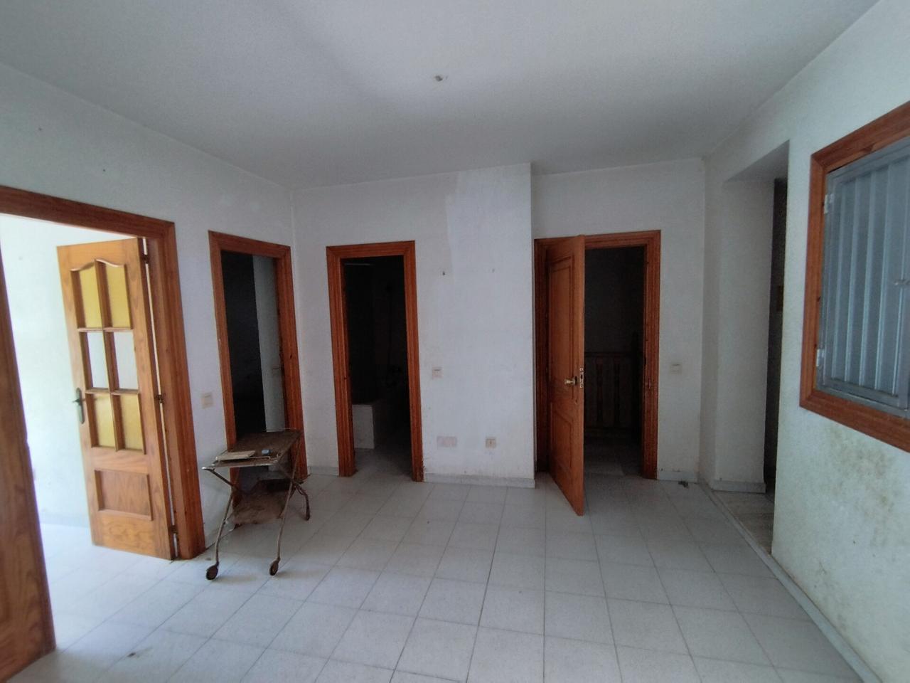 Ubicada en una planta superior, esta vivienda destaca por su generosa superficie. Se organiza en torno a un amplio vestíbulo distribuidor que conecta todas las dimensiones de la casa, eliminando pasillos innecesarios. Cuenta con un acogedor salón, cocina independiente, patio interior y dos baños completos. Sus tres dormitorios son especialmente espaciosos, destacando uno de ellos con acceso directo al patio.